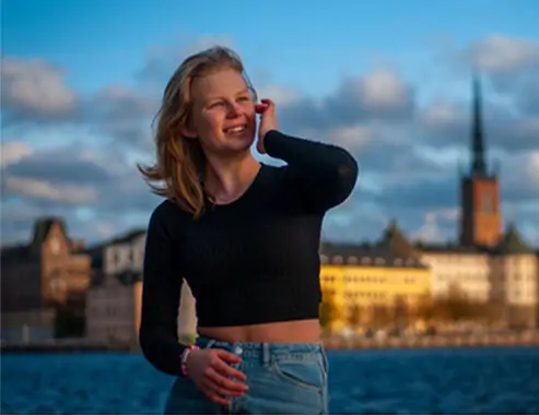 Freja är 17 år och bor i Hässelby-Vällingby stadsdelsområde i Stockholm. Hon har arbetat hos Nannynu sedan april 2022. Idag jobbar Freja åt en familj i centrala Stockholm som har två barn. Hon studerar på gymnasiet och jobbar även extra som servitris på Tele2 arena. På sin fritid gillar hon att dansa, rida, åka skidor, vara med vänner och spendera tid med sin familj.